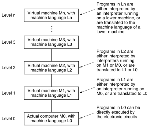 A multilevel machineIn this book the words 'level' and 'virtual machine' will be used interchangeably. Just keep in mind that computer terms can mean different things within different contexts and the term 'virtual machine' can mean several things.