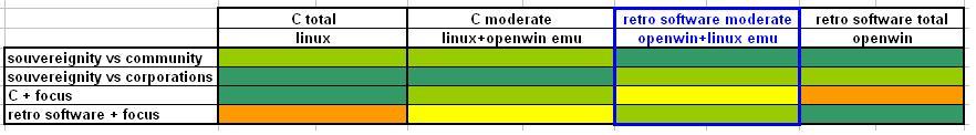 The table down here is a schematic overview of the decision I saw myself confronted with.