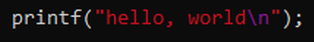 Statements of a function exist between braces: {}A function is called by naming it, like printf followed by parenthesizes that contain the arguments, "hello, world\n", which in this case is a character string or string constant . For now, the authors state, they will only use character strings as arguments for functions.