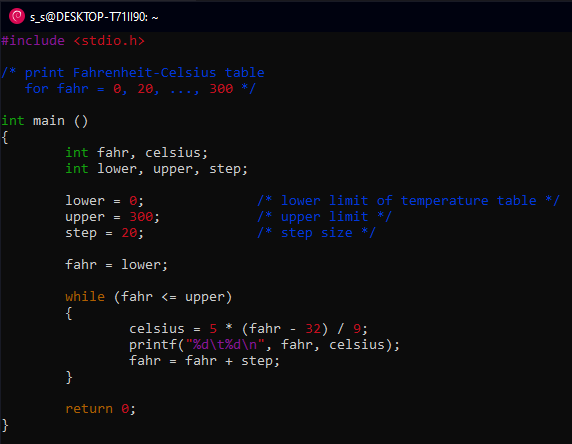 int fahr, Celsius;