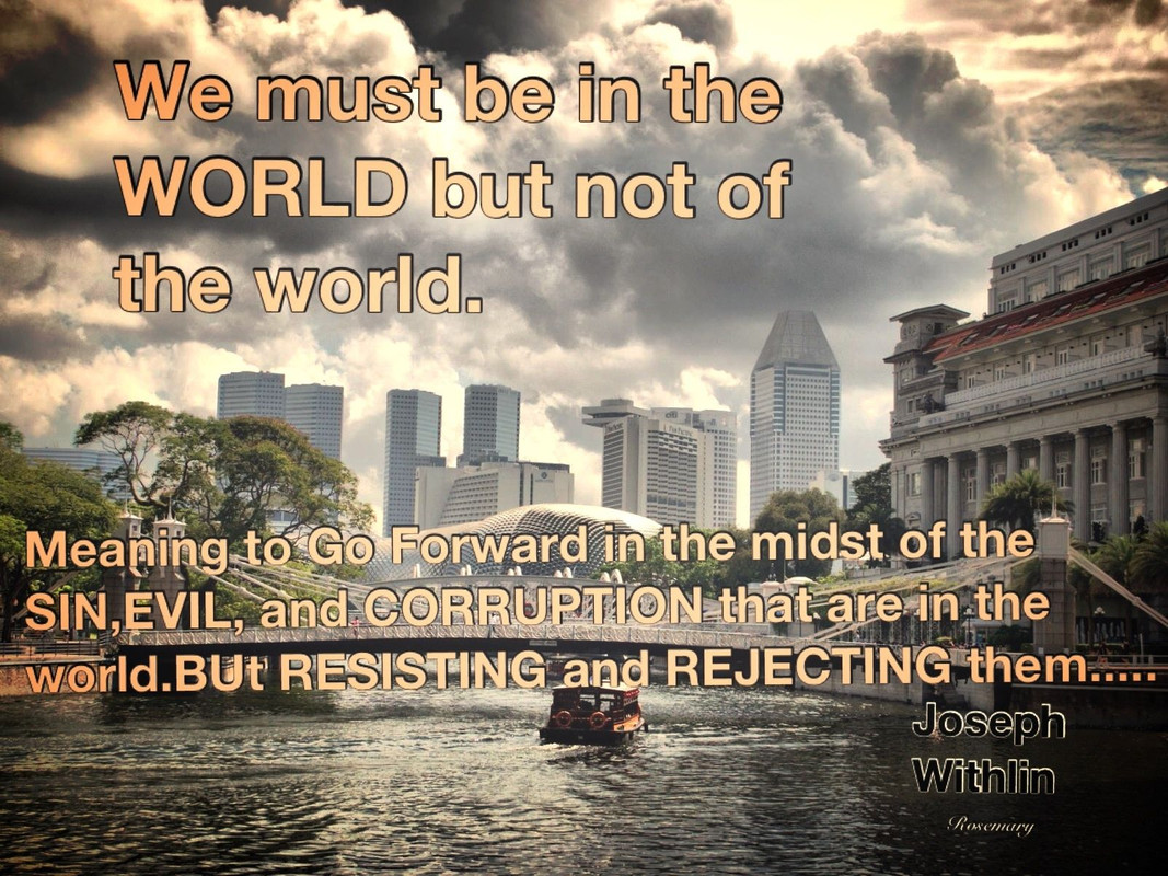 "14 I have given them your word, and the world has hated them because they are not of the world, just as I am not of the world. 15 I do not ask that you take them out of the world, but that you keep them from the evil one.[a] 16 They are not of the world, just as I am not of the world. 17 Sanctify them[b] in the truth; your word is truth. 18 As you sent me into the world, so I have sent them into the world."